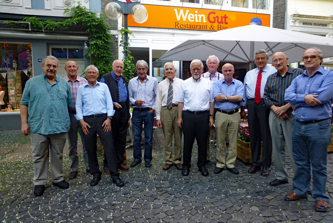 Hans Dieter Schmitz, Heribert Meurer und Rudi Schröter hatten abgesagt, sodass damit 13 Ehemalige zum Treffen erschienen waren. Hans-Heiner Grube hatte es nicht rechtzeitig zum Gruppenfoto geschafft, war aber dann ein munterer Gesprächspartner.