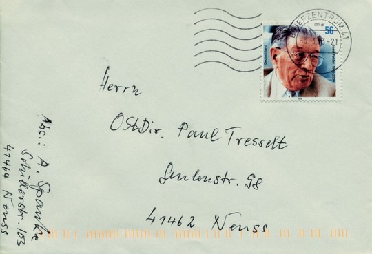 Ich wusste, dass sein Vater Hausmeister an der Grundschule Kaarster Str. in Neuss gewesen war; aber alle Recherchen bei der Stadt Neuss führten zu keinem Ergebnis, da die Eltern bereits gestorben waren. Da kam Wolfgang Kreutzer als Retter ins Spiel: Wie viele andere, hatte er gelegentlich natürlich auch Polizisten auf seinem Zahnarztstuhl. Ich weiß nicht, unter welchen Qualen er einen veranlasste, die Polizei-Fahndungsmaschine in Gang zu setzen, aber das Ergebnis konnte sich sehen lassen. Innerhalb von zwei Tagen wurde nämlich Johannes Schmitz als Hans-Dieter Schmitz identifiziert. Dessen Telefonnummer stand zwar nicht im Telefonbuch, aber die mir zugespielte Nummer gehörte zu Philipp Schmitz in Saarbrücken, der mich dann aber schnell an seinen Vater weiterleitete: Treffer!